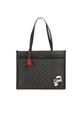 Women's Black Ikon Monogram Cc Sm Tote Bag Karl Lagerfeld B1W30023-2LS BROWN KL MONO