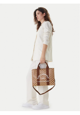 Women's Brown K/Rsg Square Mono Md Tote Bag Karl Lagerfeld B1W50021-2LO MONOGRAM NOUGAT
