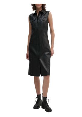 Women's Short Faux Leather Dress Karl Lagerfeld 216W1309-999 BLACK
