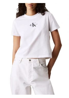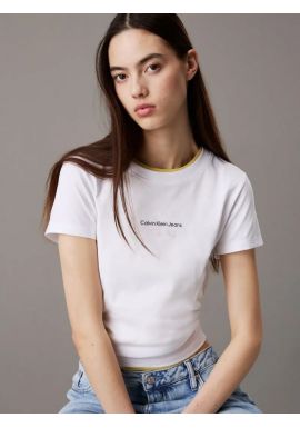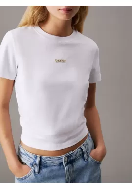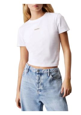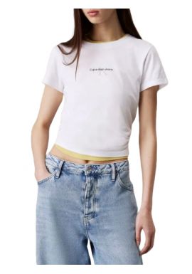 Women's White Placed Institutional Baby Tee Calvin Klein J20J225524-YAA