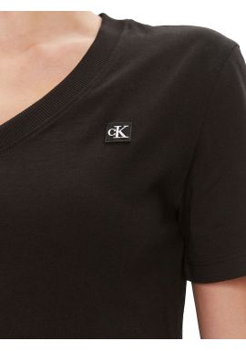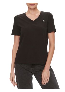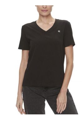 Women's Black CK Embro Badge V-Neck tee Calvin Klein J20J222560-BEH