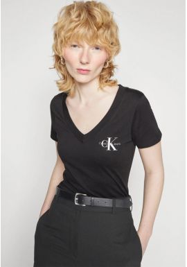 Women's Black CK Embroidery Stretch V-Neck T-shirt Calvin Klein J20J213716-BAE