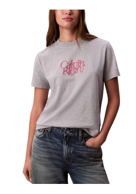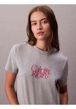 Women's Grey Ss Fitted Script Calvin Klein Tee Calvin Klein LV047D210G-P77