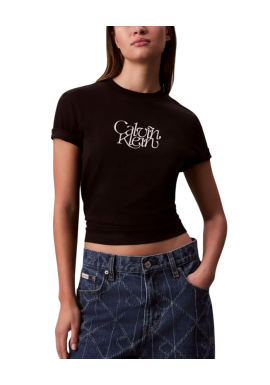 Women's Black Ss Fitted Script Calvin Klein Tee Calvin Klein LV047D210G-UB1